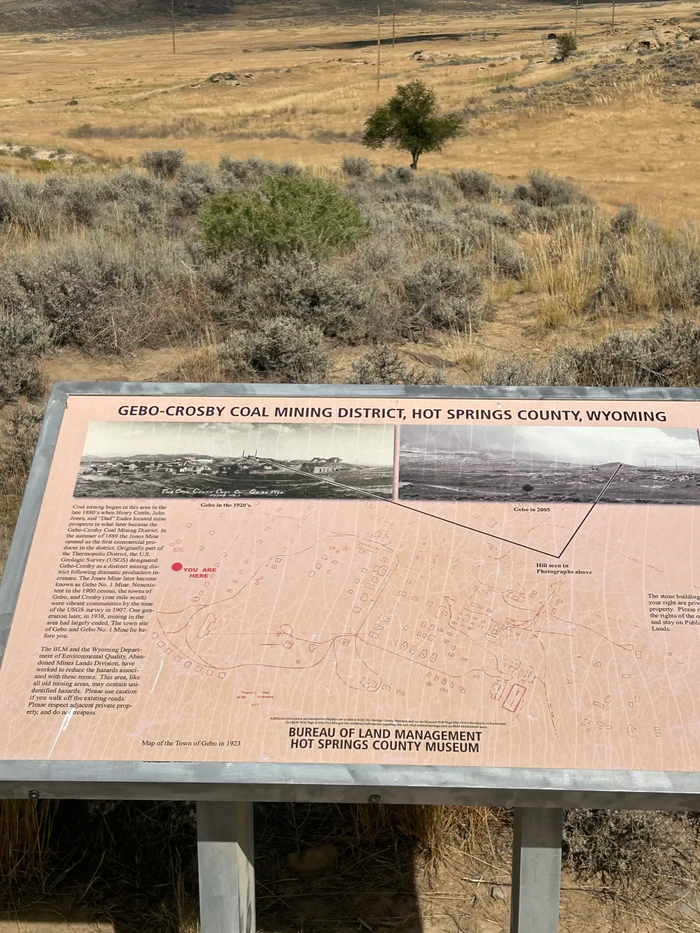Gebo is located in Hot Springs County, just a short drive north of Thermopolis. From Thermopolis, take U.S. Highway 20 to Kirby and follow local roads to Gebo. The roads leading to the site are unpaved but generally passable with most vehicles. However, if it’s been raining, a 4×4 might be a safer bet.